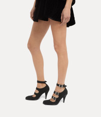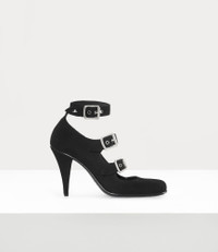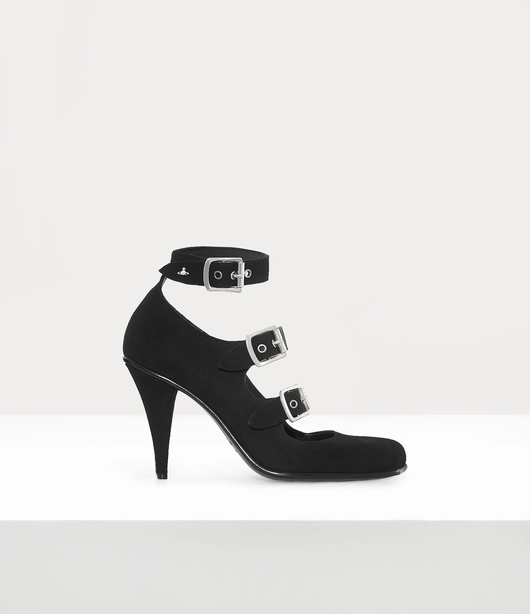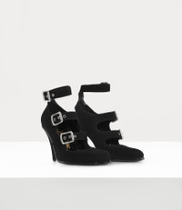 Our Savage heels feature an anatomical silhouette inspired by the House’s iconic ‘Animal Toe’ motif, first introduced in the Spring–Summer 2000 collection, 'Summertime'. Crafted from suede leather, the design is completed with sleek silver-tone-tone hardware and miniature orb motif on the strap. Code: 7401002EW-L00C6--BLACK - Features triple buckle fastenings - Polished eyelets and buckles - High stiletto heel - Black leather interior - Eyelet detailing on the straps - Curved heel construction - Thin outsole - Gold logo detailing on the insole - Heel height: 9cm - Made in Italy COMPOSITION - 100% Calf leather