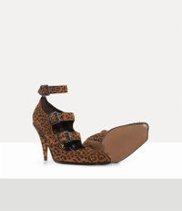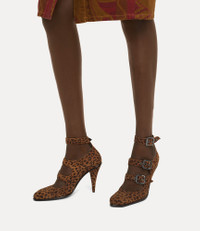 Our Savage heels feature an anatomical silhouette inspired by the house’s signature ‘Animal Toe’ motif, first introduced in the Spring–Summer 2000 collection, ‘Summertime’. Crafted from leather, the style is printed with a vintage-inspired leopard suede and finished with gunmetal-tone hardware. Code: 7401002EW-L00BY--LEOPARD - Features triple buckle fastenings - Polished eyelets and buckles - High stiletto heel - Black leather interior - Eyelet detailing on the straps - Curved heel construction - Thin outsole - Gold logo detailing on the insole - Heel height: 9cm - Made in Italy COMPOSITION - 100% Sheep leather