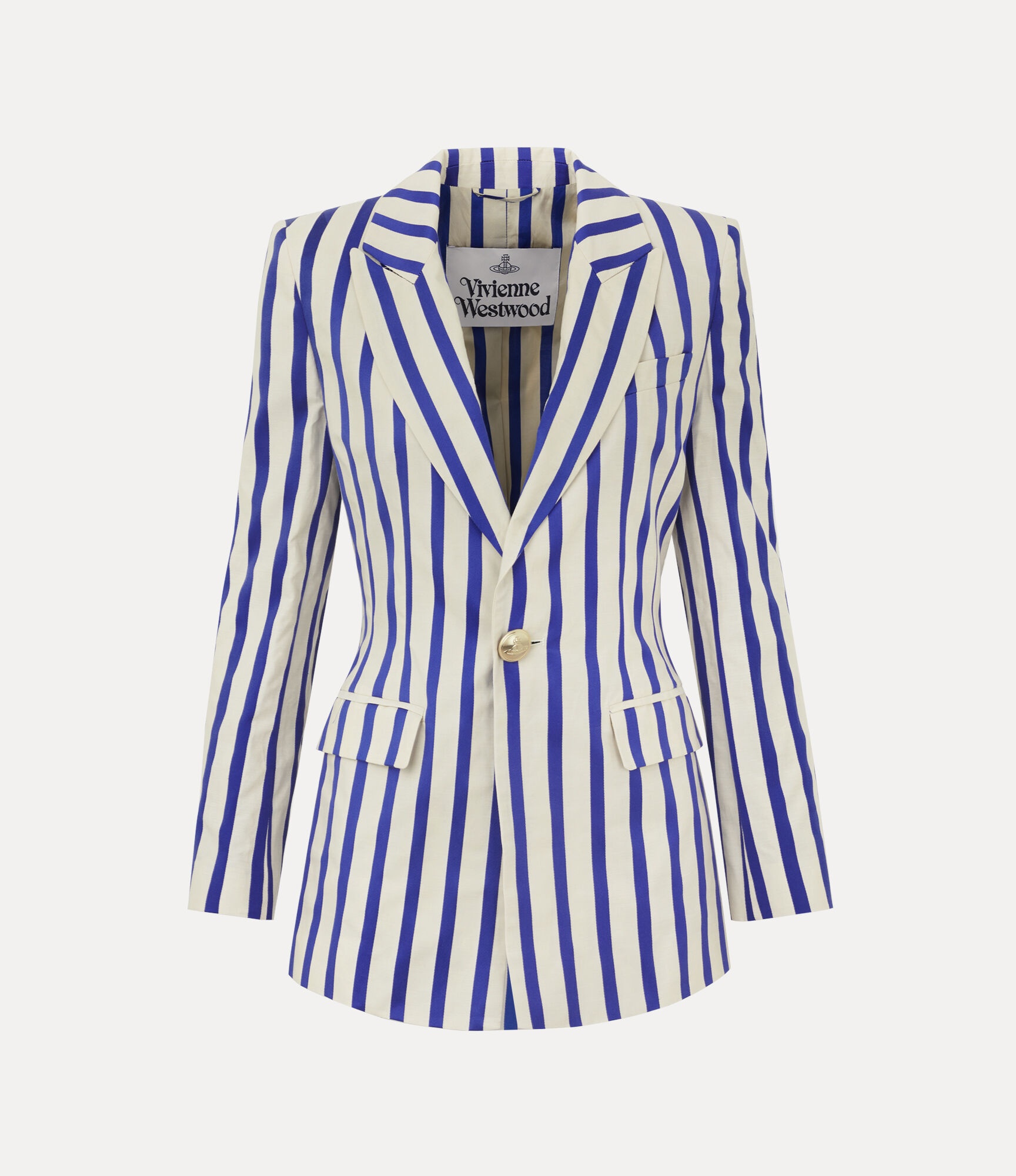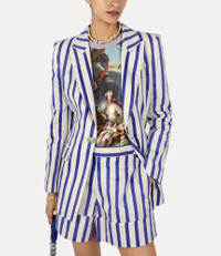 Stripe artwork Long-sleeved design Single breasted Front-button fastening Tonal stitching Longline silhouette Peak lapels Padded shoulders Two front flap pockets Please note that the rough appearance of the garment is due to the fact that this fabric is made of two yarns woven in a different way. Code: 14010063W00GAA202 Details & Features Please handle the garment with care and carefully follow the washing instructions.