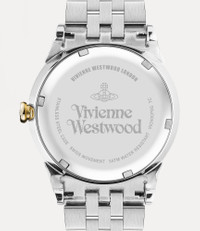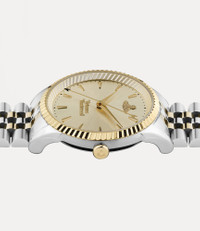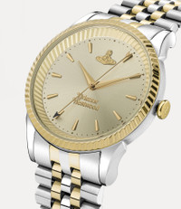 Anchored by a two-tone stainless steel bracelet, the Seymour watch has a coin-edged bezel that complements the golden sunray-brushed dial. Made in England, the watch has a chain-link strap that fastens with a butterfly clasp. Please note that this watch comes in a gift box and has a two-year guarantee. Material 100% Stainless Steel Code: VV240CPSGXXXCPSG Details & Features Face dimensions: H 3.7cm x W 3.7cm