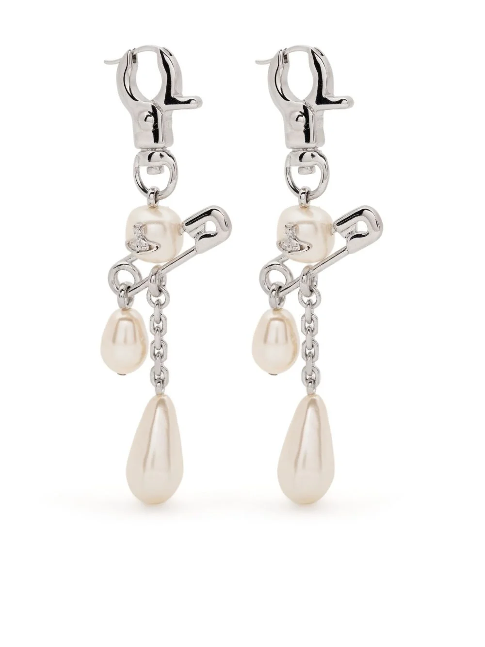 Claude Long earrings Highlights - Silver-tone - Snap-fit fastening - Polished finish - Pearl detailing - These earrings come as a pair. Imported SIZE & FIT Model measurements Height 5 ft 10 in(1.77 m) Bust/Chest 30.7 in(78 cm) Hips 35.82 in(91 cm) Waist 21.25 in(54 cm) Measurement HEIGHT 2.95 in(7.5 cm) Weight (single earring) 8.7 g(8.7 g) WIDTH 0.39 in(1 cm)