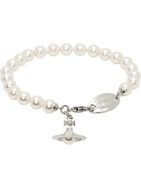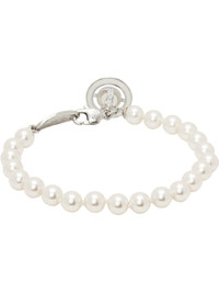 Beaded faux-pearl bracelet in white. · Logo charm at lobster-clasp fastening · L7" Supplier color: Platinum/Creamrose Brass. Made in Thailand 252314F020000