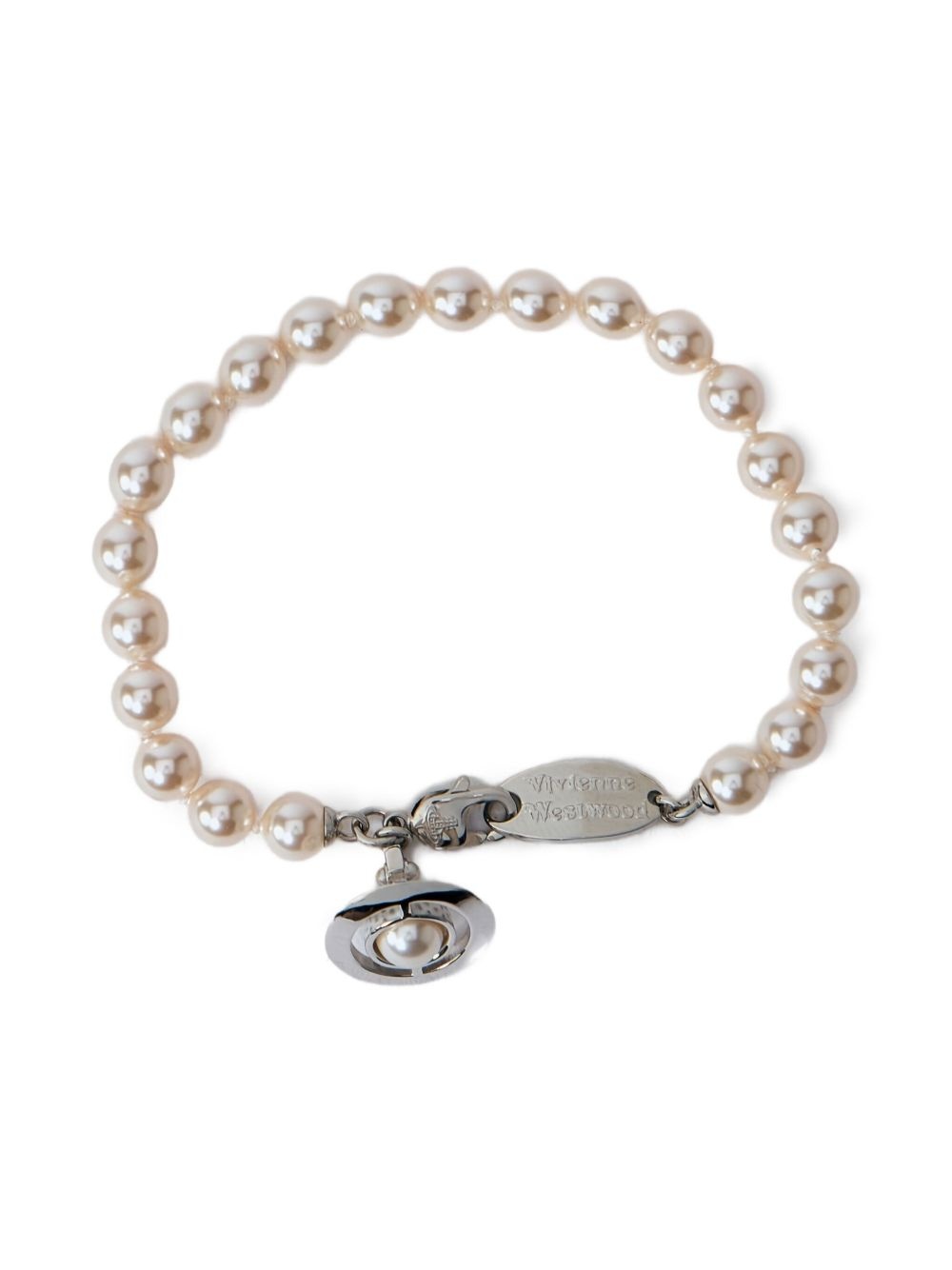 Orb-plaque pearl bracelet Highlights - Silver - Faux pearls - Lobster claw fastening - Orb plaque Imported