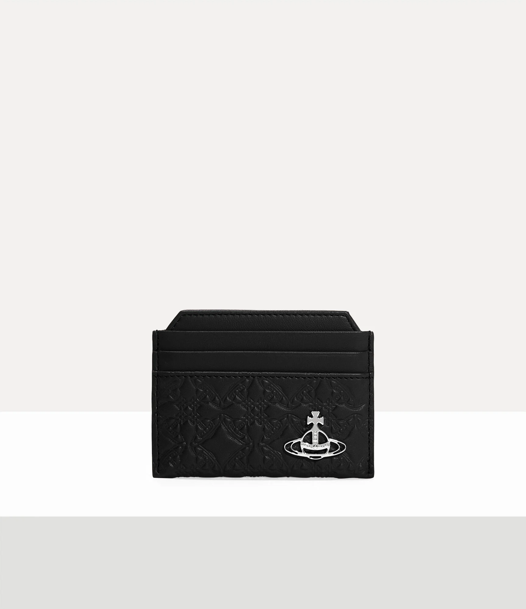 Our archive orborama jacquard has been revived this season. Embossed on the rectangular silhouette of the Slim card holder, the pattern features a repeated orb motif with interlocking detailing - evoking Vivienne Westwood's notion of launching tradition into the future. Code: 8050889913313 - Features one main card slot - Squared-shaped design - Silver-tone hardware and branding - Measurements: height 7.5cm, width 10cm, depth 1cm COMPOSITION - 100% Leather