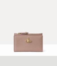 The Slim Flap Card Holder returns this season in a saffiano-embossed PU finish. The piece is embellished with our bas-relief orb motif at the front, recalling Vivienne's vision of launching tradition into the future. Code: 8053195345199 - Features a press-stud fastening - Rectangular silhouette - Top-zip closure - Polished, gold-tone hardware - Bi-fold design - Receipt slot - Internal card slots - Embossed interior panel - Height 8cm, width 13cm, depth 1.5cm - Made in Italy COMPOSITION - Main material: 65% polyurethane, 35% cotton - Hardware: gold-tone plated brass