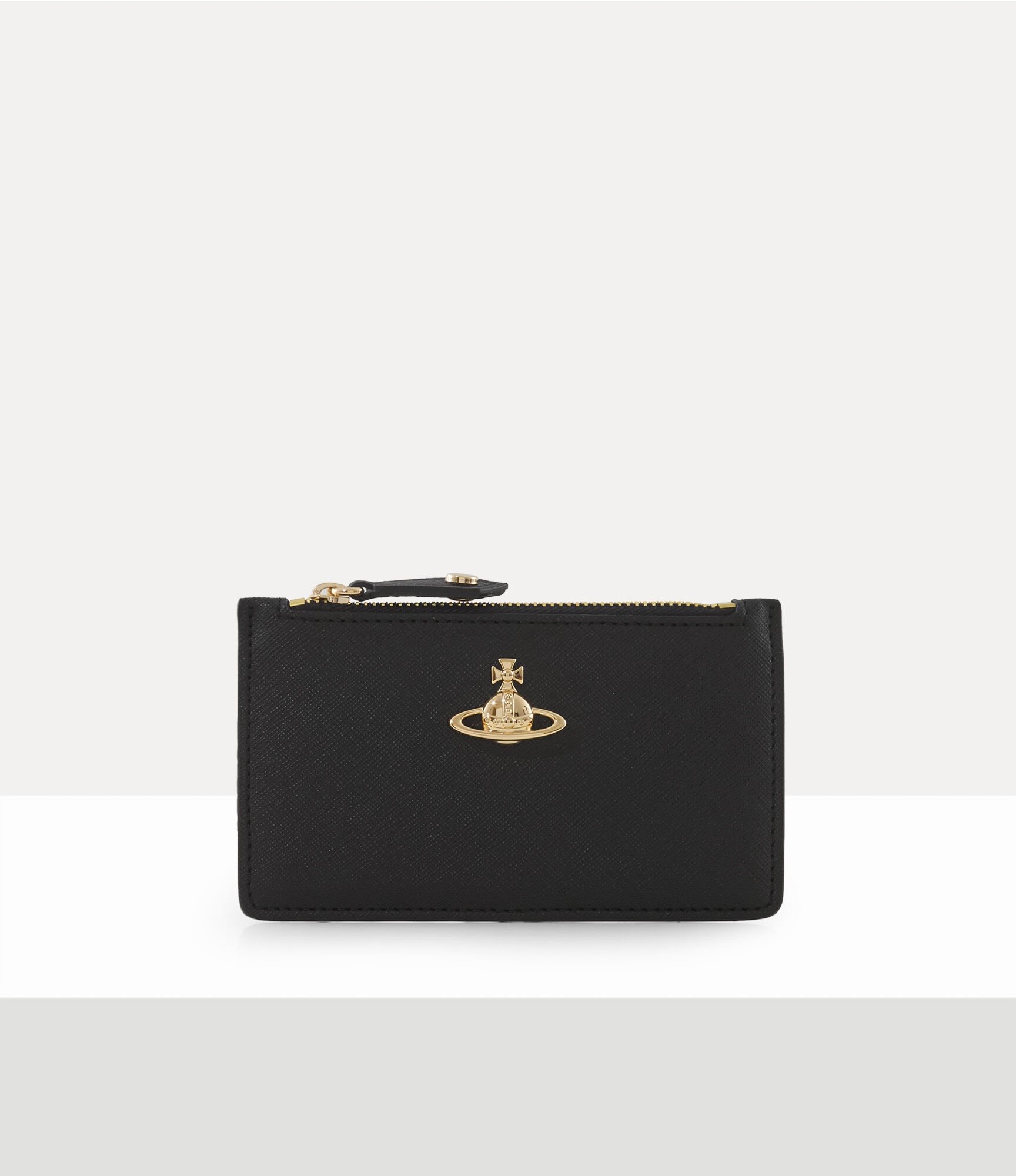 Our Slim Long card holder is offered in PU leather this season, adorned with a saffiano embossing across the design. The piece is embellished with a three-dimensional orb motif at the front, which symbolises tradition, encircled by the celestial rings of Saturn, symbolising the future. Code: 8053195233328 - Features gold-tone hardware - Orb-embossed zip - Tonal stitching - Rectangular silhouette - Polished hardware - Four card slots at the back - Medium size - Length 13cm, height 8cm, depth 0.3cm - Made in Italy COMPOSITION - 65% Polyurethane - 35% Cotton