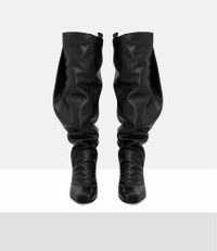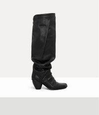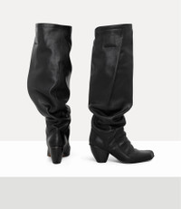 Our River boot is a new development this season and features the anatomical silhouette, reminiscent of the house's signature 'Animal Toe' motif - first revealed in the ‘Summertime’ collection of Spring-Summer 2000. The design features a knee-high silhouette, complete with an undercut detail on the cone heel. Code: 71020041W-L00CJ--BLACK - Features a slouchy silhouette - Fit true to size - Embossed leather sole - Pulls on - Knee-high design - Orb jacquard interior lining - Washed leather finish - Heel height: 65mm - Made in Italy COMPOSITION - 100% Calf leather - Vegetable tanning is a process that doesn't utilise chrome or heavy metals. With a natural look and an elegant polished shine, the beauty of this leather increases more with wear over time.