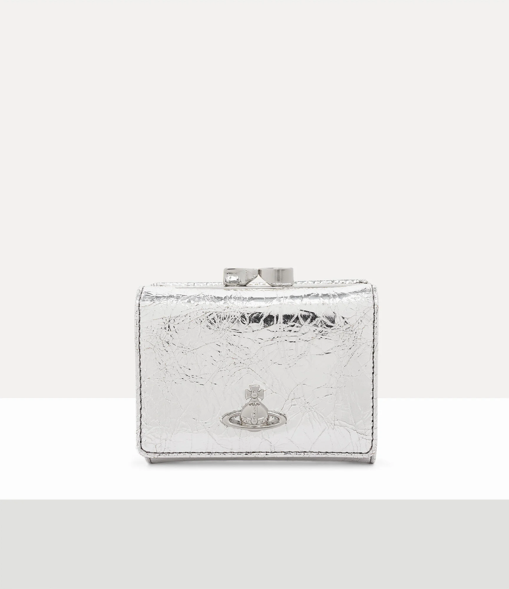 Our Small Frame wallet features a metallic crinkle-effect leather design this season, inspired by the house’s rich archive. The wallet offers an organised interior and is adorned with our bas-relief orb motif on the front - symbolising the ethos of launching the past into the future. Code: 8053195340163 - Features a crinkled finish - Press-stud fastening compartment - All-metal orb plaque - Embossed interior panel - Photo identification window - Inscribed interior panel - Height 9cm, width 11cm, depth 6cm COMPOSITION - Main material: 100% calf leather - Hardware: plated brass