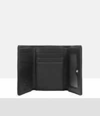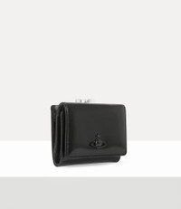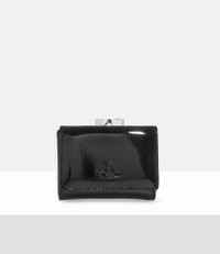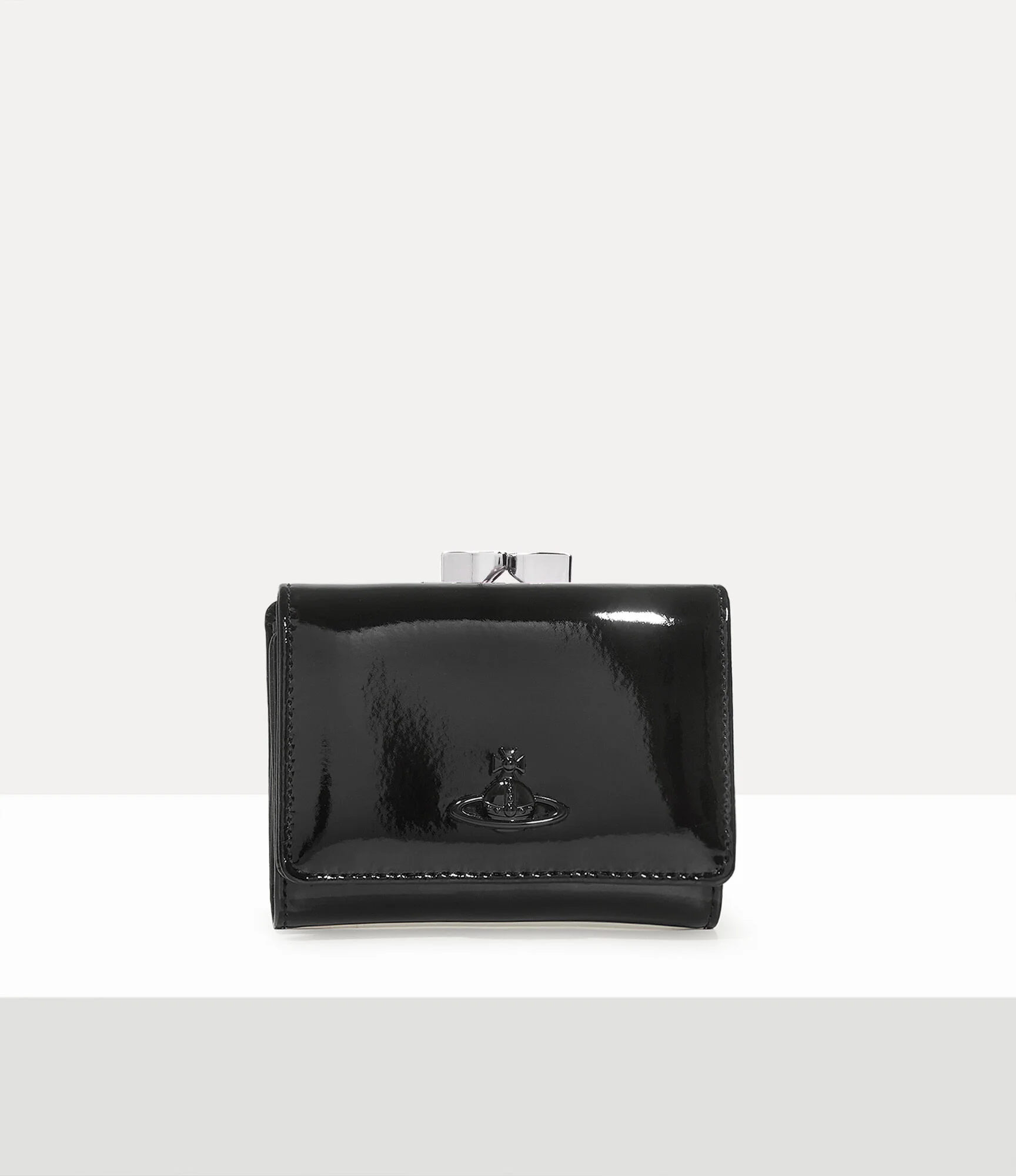 Our Small Frame wallet features a tri-fold leather silhouette, adorned with a tonal bas-relief orb plaque that epitomises Vivienne's vision of launching tradition into the future. The patent finish, reminiscent of the liquid latex and rubberwear in our iconic Sex boutique, evokes our house's signature punk aesthetic. Code: 8050889915416 - Features silver-tone plating - Hand-painted enamel details - Coin compartment - Clasp closure - Press-stud fastening - Eight card slots - Photo identification window - Inscribed interior panel - Measurements: height 9cm, width 11cm, depth 6cm COMPOSITION - 100% Leather