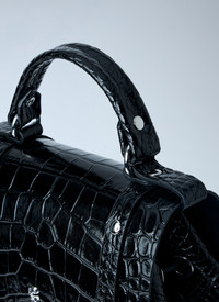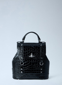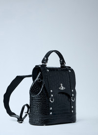 Leather small Max backpack in croc-embossed finish. - Top handle - Adjustable straps - Flap-over construction with magnetic closure - Front Orb motif - One main compartment - 100% Leather - Color: Black - Code: 4A03000EU-L0098-N401