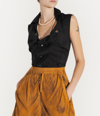 The SS Drunken shirt originates from an archive design of the Drunken shirt, which employs Vivienne’s original experimental 'Drunken' tailoring pattern cutting system – where garment elements are distorted assuming an almost surreal shape. Code: 15010067-W012U--BLACK - Features an embroidered orb motif - Fits true to size, please take your normal size - Branded mother-of-pearl buttons - Off-centre collar - Contorted seams - Lightweight - The model is 5'11/180cm and is wearing a size 40 - Made in Italy COMPOSITION - 70% Cotton - 30% Silk