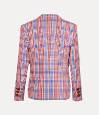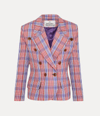 The Stewart jacket features a check motif across the design, featuring a row of amber-coloured buttons on either side of the double-breasted silhouette, each intricately engraved with the ‘Vivienne Westwood’ lettering. The cropped style offers a unique cut-out detail at the notch lapel, while the interior is lined with an orb jacquard fabric. Code: 1401007F-W012K--RED-BLUE - Features internal chest pocket - Buttoned cuffs - Flap pockets at the front - Rear vent - Fits true to size - Model is 5'11/180cm and is wearing a size 40 - Made in Italy COMPOSITION - 100% Viscose