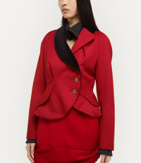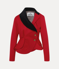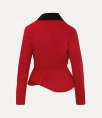 Crafted from soft wool, our Stormy jacket features a contrasting black shawl collar and an asymmetric front closure with two gold-tone embossed buttons. Delicate darting shapes the waist, flowing into a sculpted peplum hem. Code: 1401007T-W01A1--RED - Features a fitted waist - Tailored silhouette - Curved front panels with sculptural shaping - Long sleeves - Darted construction - Seam detailing at the back - Orb jacquard lining - Model is 5'9/177cm and is wearing a size 40 - Made in Italy COMPOSITION - 100% Wool