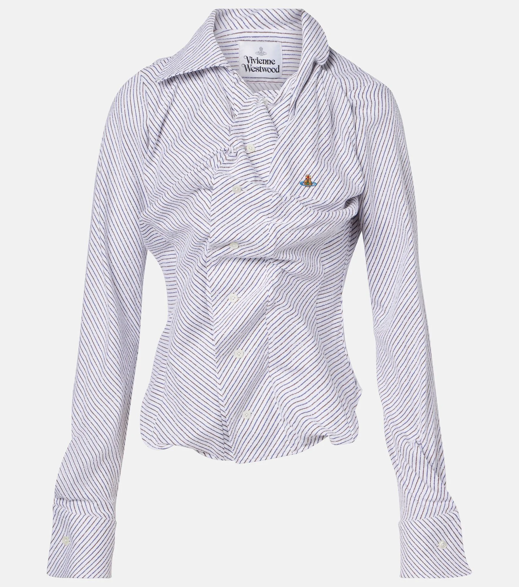 Vivienne Westwood’s designs continue to exemplify the disruptive energy of its late founder – fashion’s original punk pioneer. Carefully crafted in Italy from cotton-blend poplin, this shirt is an iconic style from the powerhouse, complete with a striped pattern in this rendition. Product Details - Material: 87% cotton, 13% polyamide - Care instructions: dry clean - Made in Italy - Color: multicoloured - Designer color name: Blue/Brown/Stripe - Contains non-textile parts of animal origin - Closure: buttoned front - Cuff: one button - Item number: P01146832 Size & Fit - Fits large to size - we recommend trying one size smaller - Cinched waist - Non-stretchy fabric - Falls to the hip - The model seen in the picture is 178cm-5'10" and wearing a size IT 38