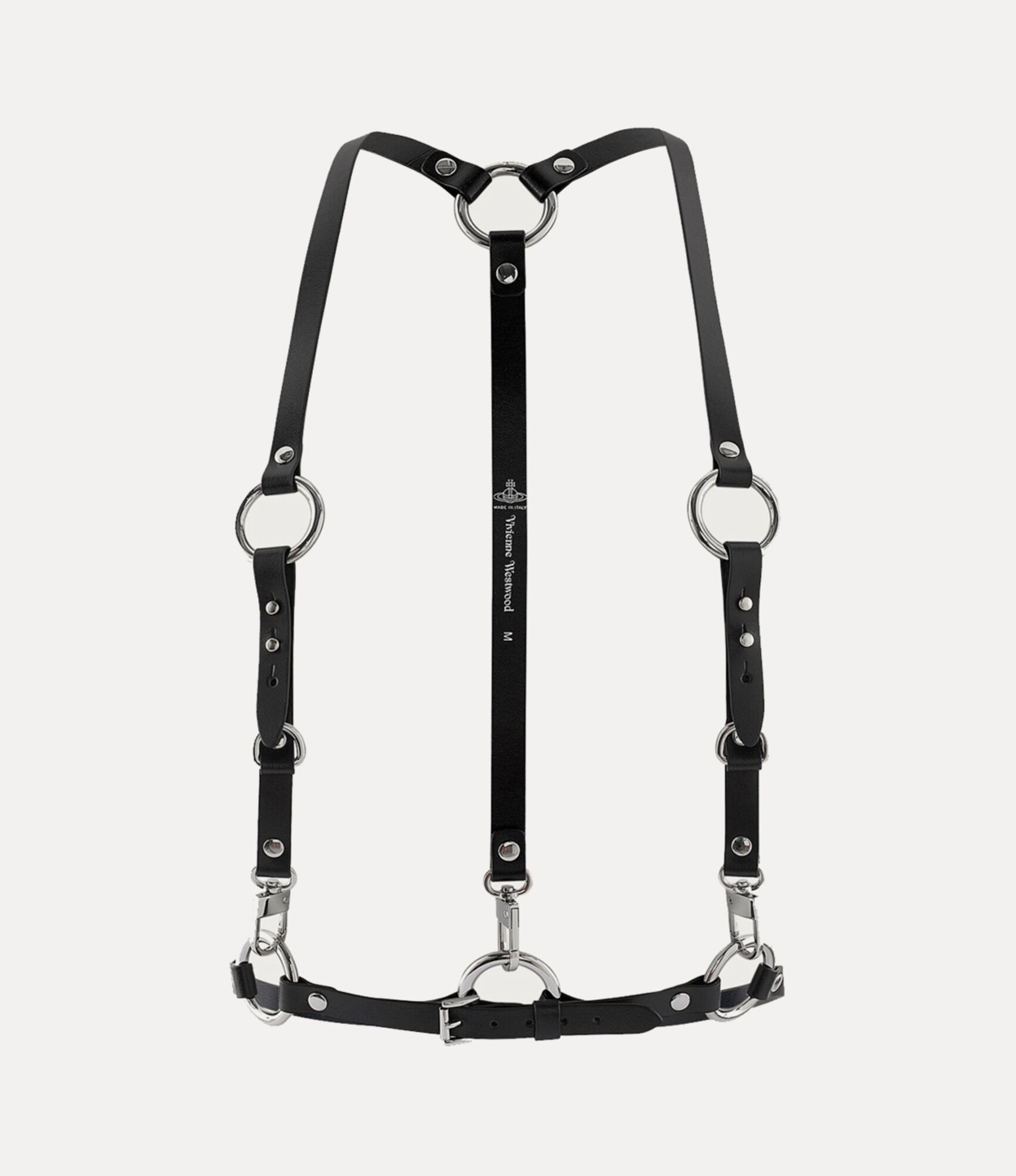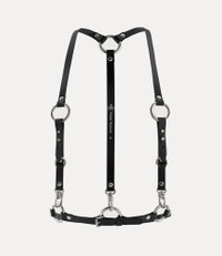 The Studs Belts harness sits over the shoulders and wraps around the waist with industrial-inspired leather straps. Code: 82010034-L002V-PF-BLACK - Made in Italy - Hoop and stud detailing - Leather straps - Polished hardware - Buckle fastening COMPOSITION - 100% Cow leather - Hardware: 100% zinc alloy - The leather used has been awarded against the LWG Environmental Auditing standards designed to provide a measure of compliance and performance capabilities of the leather business.