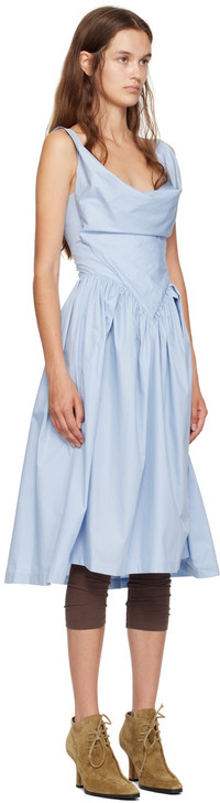Regenerated cotton poplin dress. Draping throughout. · Cowl neck · Logo embroidered at front · Gathering and pleats at waist · Concealed zip closure at back Supplier color: Blue