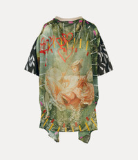 Designed with two contrasting panels, the Swing top is made from a viscose-cotton blend and features a screen print of 'The Swing’ artwork on the design. Code: 1504000H-C003F-GO-MULTI - Short sleeves - Contrasting panels - Dropped shoulders - Draped neckline - 'The Swing’ artwork - Tonal stitching - Asymmetric hemline - Ribbed detailing - Oversized fit - The female model is 5'11/180cm and is wearing a size S. COMPOSITION - Front fabric: 100% viscose - Secondary fabric: 100% organic cotton