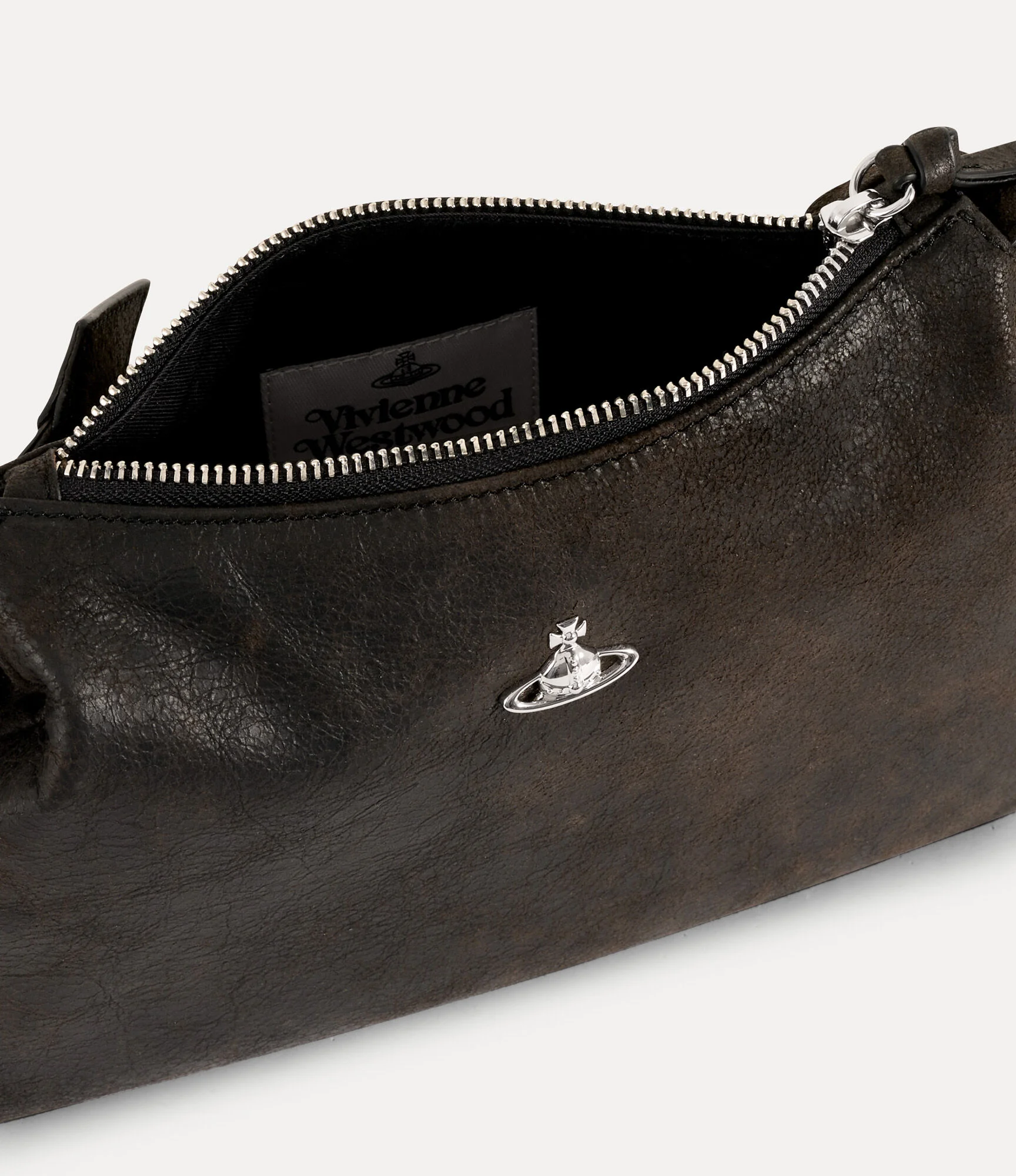 Our signature Tasha Shoulder Phone bag returns this season in distressed leather, lending the design a naturally worn-in finish, paired with the house’s classic metal hardware. At the front sits the bas relief orb motif, representing tradition, encircled by the celestial rings of Saturn to symbolise the future. Code: 8053195378845 - Features a zip fastening - Adjustable strap - Slim silhouette - Softly curved edges - Lined interior - Compact size - Fits smartphone and essentials - Length 23cm, height 12cm, depth 3cm - Made in Italy COMPOSITION - 100% Lamb leather