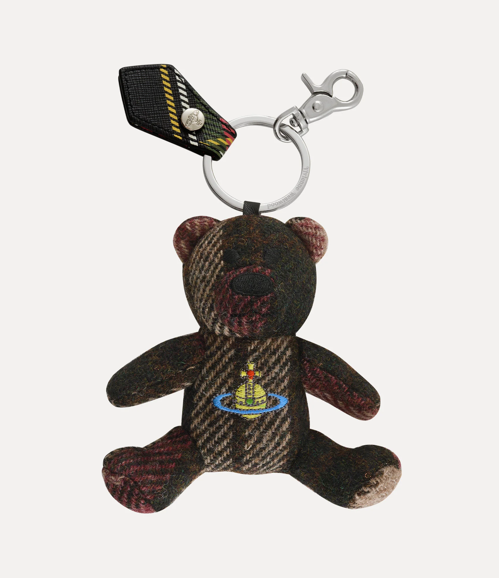 The teddy bear motif has become a signature of the house, woven through our collections since its first appearance in the Spring–Summer 1988 show, 'Pagan I'. Reviving this nostalgic emblem, the Teddy Bear keyring reimagines the silhouette in muted tones, crafted from our archival Harris Tweed. Code: 8053195304349 - Features our signature orb embroidery - Branded Harris Tweed label at the back - Polished silver-tone hardware - Detachable keyring clasp - Tonal stitching - Printed leather tab with stud detail - Height 12cm, depth 4cm - Made in Italy COMPOSITION - Main material: 100% virgin wool, crafted from certified Harris Tweed® - Harris Tweed® wool is a legally protected fabric, handwoven in the Outer Hebrides from pure virgin wool that is dyed and spun on the islands. Crafted by skilled artisans, it embodies generations of expertise, quality, and tradition.