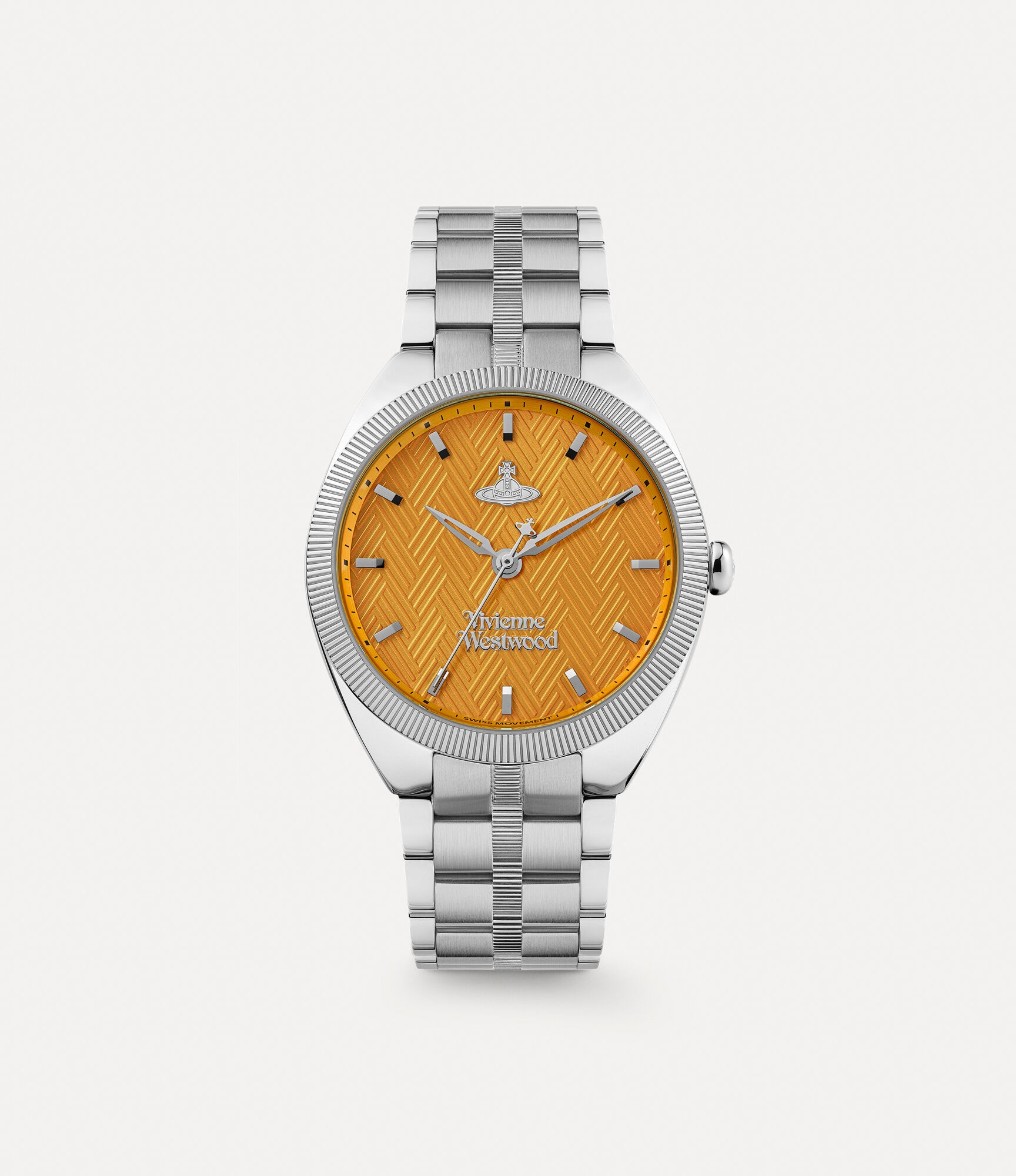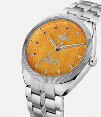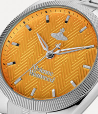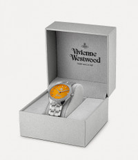 Designed with a coin-edged bezel that compliments the colourful dial, the Mew watch takes inspiration from the cobblestone streets and coloured houses of the charming London mews. Made in England Five-link bracelet Butterfly clasp Orange dial Silver-tone plating Brushed finish Hour markings Coin-edged detailing Polished case Please note that this watch comes in a gift box and has a two-year guarantee. Code: VV281PPSLXXXPPSL Details & Features Please carefully follow the care instructions in the watch case.