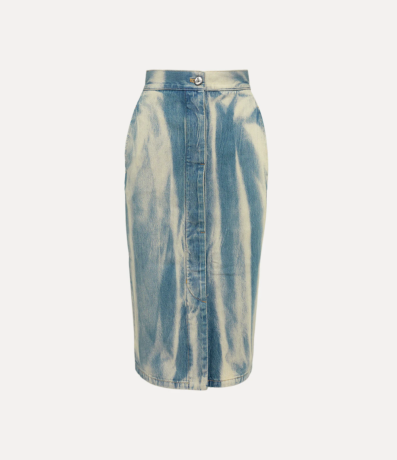 Our Trouser skirt features an organic cotton profile, adorned with a faded, bleached wash for a distressed, vintage-inspired look. Designed with a high-rise waistband that fastens with a pearl orb denim rivet button, the piece falls into a midi-length finish. Code: 1903001C-W018A--BLUE - Features a distressed bleach wash - High-waisted fit - Pencil skirt silhouette - Concealed front placket - Orb top button - Side seam pockets - Back welt pocket - Branded leather patch - Contrast orange stitching - Integrated belt loops - The model is 5'11/180cm and is wearing a size 26 COMPOSITION - 100% Organic cotton - Organic fibres are natural fibres grown with strict rules concerning the use of synthetic pesticides, insecticides, or herbicides and GMOs (Genetic Modified Organisms).