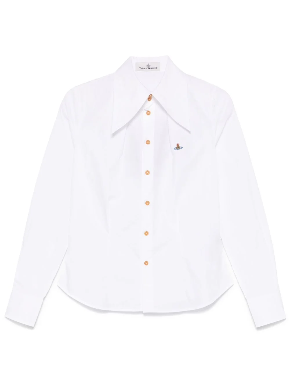Violin shirt Highlights - White - Front button fastening - Buttoned cuffs - Oversized pointed collar - Long sleeves Imported Composition Regenerative Cotton 100%, Viscose 70%, Polyester 30% SIZE & FIT Model measurements Height 5 ft 9 in(1.75 m) Bust/Chest 34.64 in(88 cm) Hips 36.61 in(93 cm) Waist 26.37 in(67 cm) FittingInformation Designed for a slim fit that sits just away from the body offering a close yet comfortable fit Made from a midweight non-stretch fabric Washing instructions Machine Wash