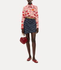 Our Violin Tuxedo shirt features the house's signature two-button collar, adorned with the ‘Kisses’ artwork, inspired by our 'Boudoir' perfume packaging. The piece offers an exaggerated pointed collar, finished with delicate darting at the bust and waist for a sculpted, contoured shape. Code: 1501006A-W017G--KISSES - Features Vivienne's hand-written ‘Les Femmes Ne Connaissent Pas Toute Leur Coquetterie’ artwork - Gently rounded hem - Engraved amber buttons - Concealed button placket - Fitted silhouette - Long sleeves - Structured cuffs - Darted construction - Refined and understated seams - The model is 5'11/180cm and is wearing a size 40 COMPOSITION - 100% Viscose - Viscose derived from wood pulp sourced from forests managed in accordance with certified forestry standards.