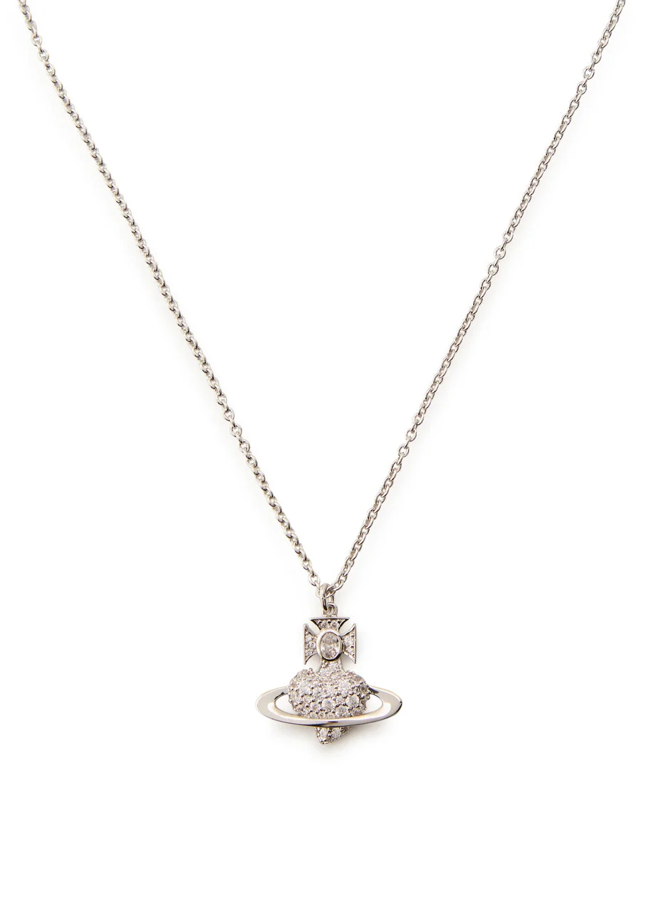Info & Care Vivienne Westwood brass necklace; Pave orb pendant with heart motif, designer-engraved tag; Adjustable lobster-clasp fastening; Presented in a designer-stamped box; Gift boxes are subject to availability; Size & Fit Length: 43cm