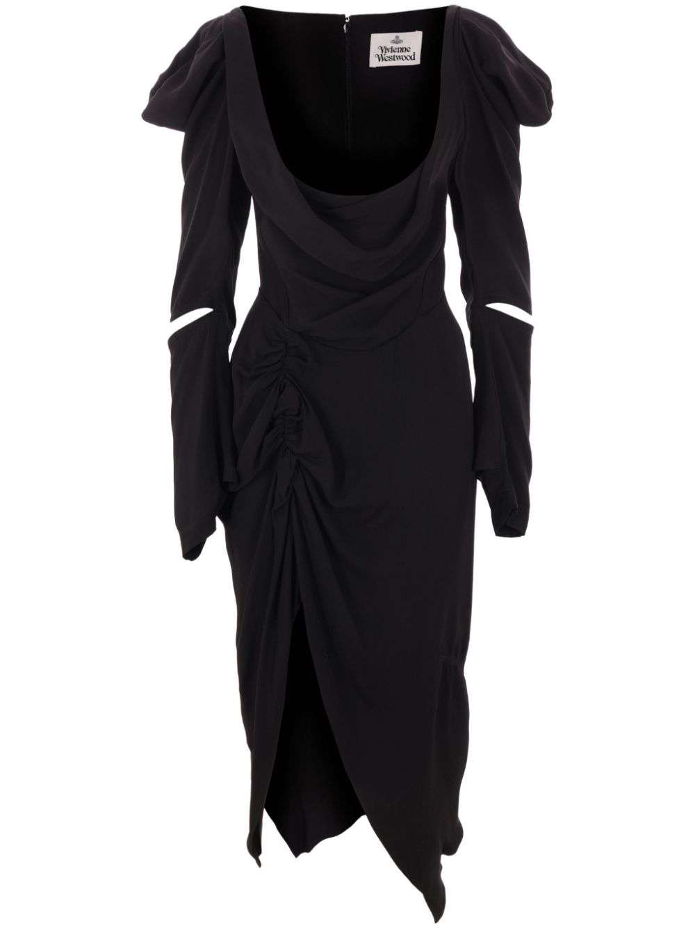 draped dress Highlights - Black - Draped design - Asymmetric design - Long sleeves - Front slit - Rear zip fastening - Internal logo patch - We've partnered with good on you — an independent agency that rates how brands perform in relation to their impact on the planet, people and animals, with a multi-criteria rating simplified to a five points scale. in order to be awarded our conscious label, larger brands need to score a minimum of four out of five ('good'), while smaller brands must score at least three out of five ('it's a start'). - This item comes from a brand rated three out of five ('it's a start') by good on you at the time it was added on farfetch. please note, this is a brand-level rating and does not guarantee that this product is made with conscious materials. - Learn more about what makes a product conscious on our conscious criteria page Made in Italy Composition Viscose 100%
