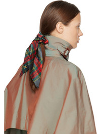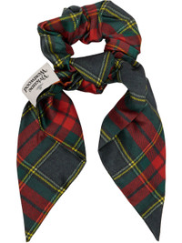 Silk twill scrunchie. · Check pattern throughout · Logo-embroidered knot at face · D4" Supplier color: Scarlet tartan 100% silk. Made in Italy 252314F018003