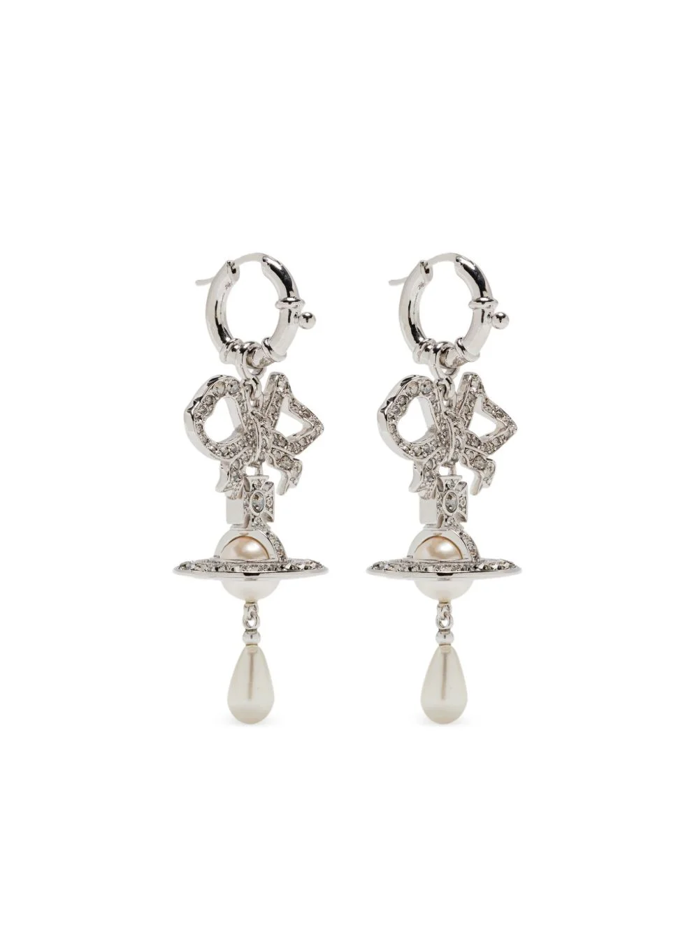 Rigoberta bow-crystal pearl earrings Highlights - Silver-rone - Crystal embellishment - Bow motif - Three-dimensional orb - Pearl drop - Hoop fastening - These earrings come as a pair. Imported SIZE & FIT Model measurements Height 5 ft 9 in(1.75 m) Bust/Chest 34.64 in(88 cm) Hips 36.61 in(93 cm) Waist 26.37 in(67 cm) Measurement HEIGHT 1.73 in(4.4 cm)