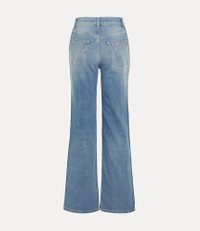 The W Ray 5 Pocket jeans are a new development of the Ray trousers, taken from the Vivienne Westwood archives. The piece receives a fitted, mid-rise waistband, adorned with monogram letter belt loops and a silver-tone orb-embossed button, falling into a flared leg design. Code: 1902002B-W010G--BLUE - Features a five-pocket design - Contrasting topstitching - Button and zip-fly fastening - Lightweight - Slight stretch - Fit true to size - Washed denim - Model is 5'11/180cm and is wearing a size 26 COMPOSITION - 99% Cotton - 1% Elastane