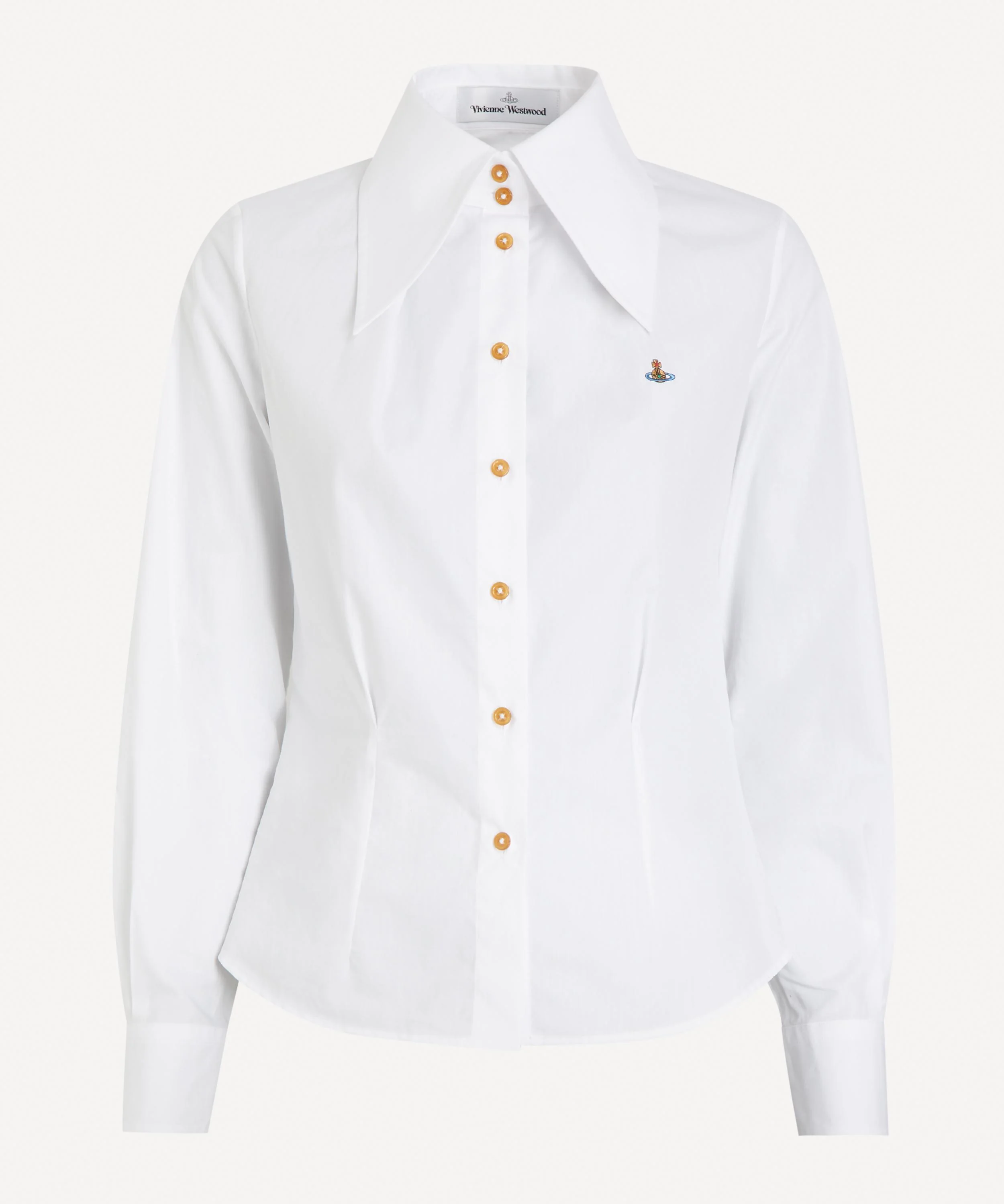 DETAILS Cotton shirt Fits true to size Slim fit Long sleeves Single-button cuffs Exaggerated collar Front button fastening Curved hem Orb embroidery SIZE & FIT Model is 178cm/5'10"; Chest: 77cm; Waist: 65cm; Hip: 92cm and wears a size 40 COMPOSITION & CARE 100% Cotton Wash separately. Do not tumble dry
