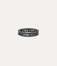 The Vivienne Westwood Westminster ring is named after the esteemed Westminster district in London, renowned for its rich history and cultural importance. The piece receives a silhouette crafted from recycled silver, adorned with a gunmetal-tone finish that elegantly encircles the slim lettering logo on the band. Code: 64040016-01S001-FJ-RUTHENIUM-925- - Features the 'Vivienne Westwood Mayfair' design - Polished finish - Thin band - Carved graphic logo - Cut-out detail - Weight: 25.5g - Measurements: band width 0.4cm COMPOSITION - 100% Recycled silver