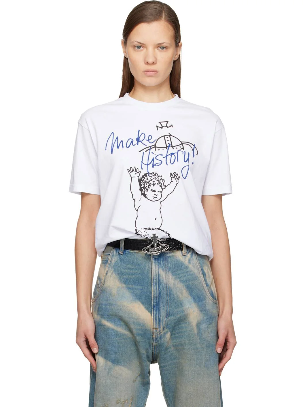 Organic cotton jersey T-shirt. · Rib-knit crewneck · Logo, text, and graphic printed at front · Logo embroidered at front hem Supplier color: White 100% cotton. Made in Tunisia 252314F110027
