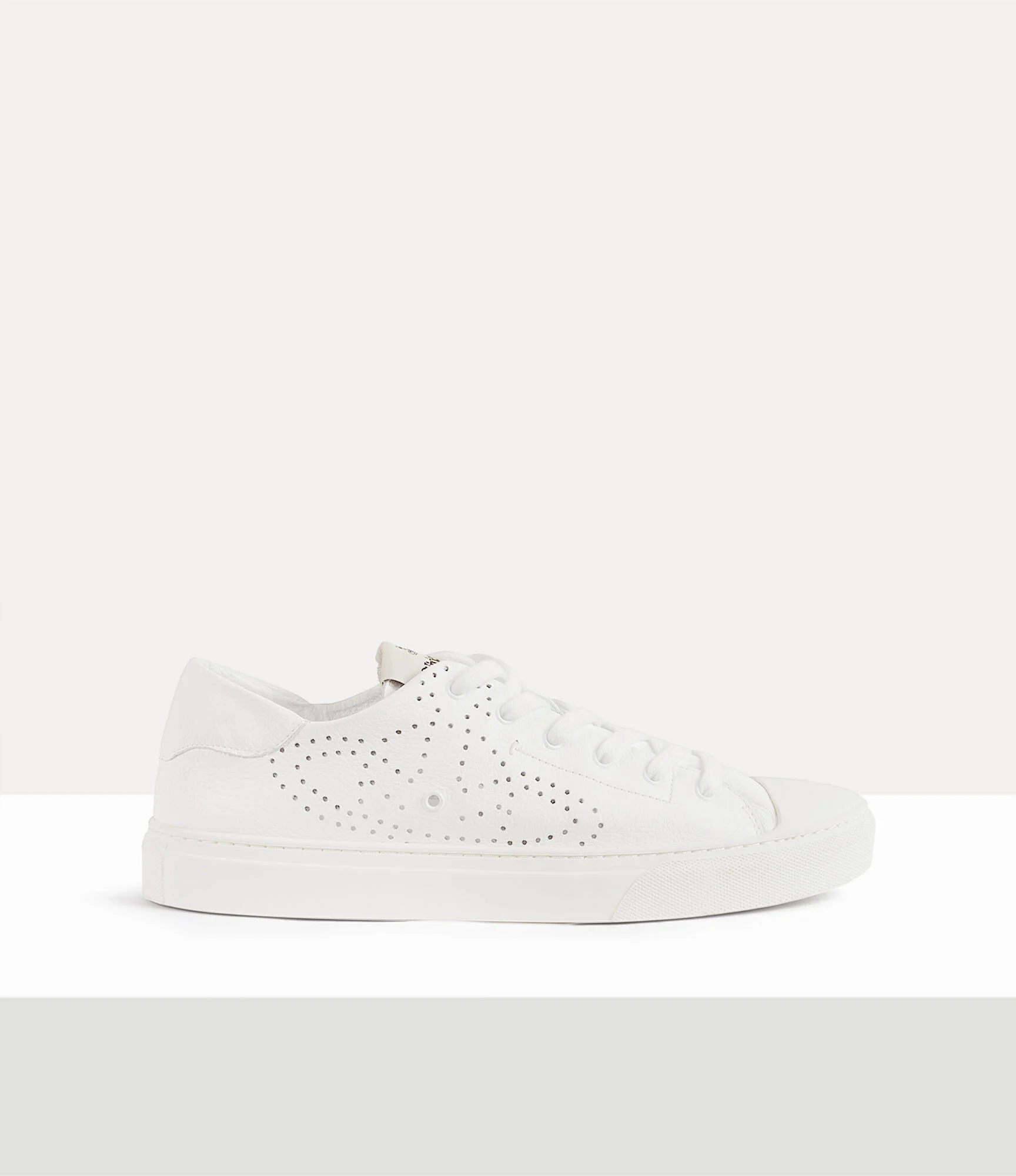 Our Soft Punch trainers are punched with a perforated orb, which symbolises tradition, encircled by the celestial rings of Saturn, symbolising the future. Crafted from unlined tumbled calf nappa leather, the soft silhouette is complete with tonal sprayed hardware. Code: 7502005JW-L008C--WHITE - Features perforated detailing along the sides - Tonal stitching - Classic lace-up front - Low-top silhouette - Rounded toe - Padded collar for added comfort - White rubber sole with a slightly raised platform - Black eyelet detail near the arch - Flat outsole with subtle grip lines COMPOSITION - Upper: 100% leather - Sole: rubber