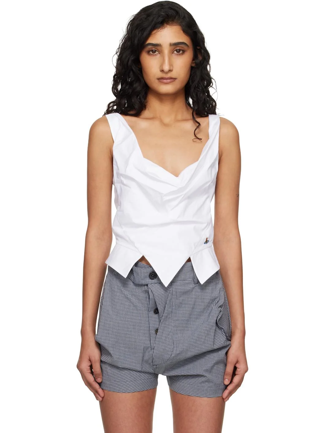 Cotton poplin top. · Plunging cowl neck · Draping at front · Logo embroidered at front hem · Notched peplum hem · Zip closure at back Supplier color: White 100% cotton. Made in Italy 261314F111006