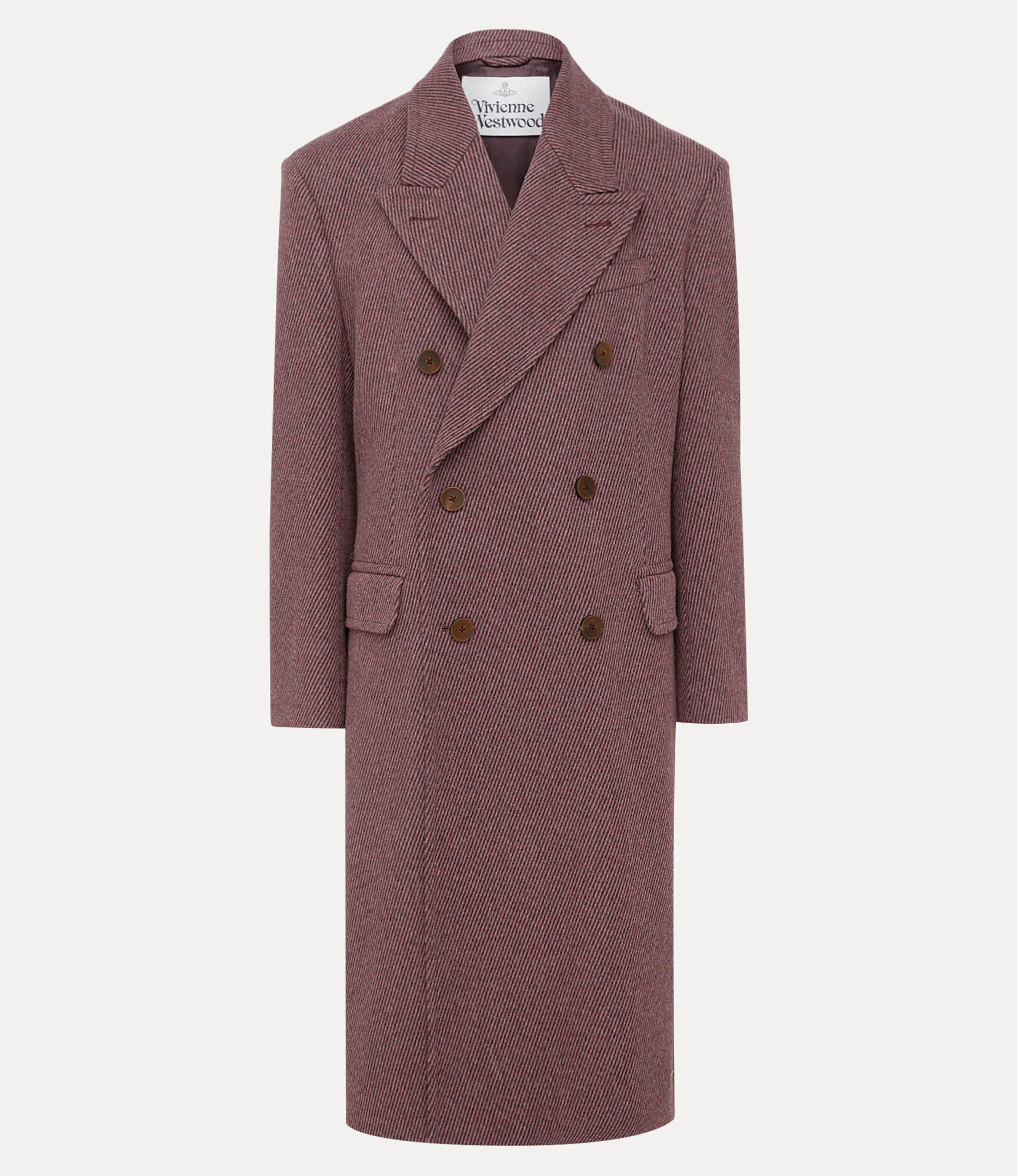 Our Winston coat features a textured wool profile, complete with a diagonal twill weave in a muted burgundy tone. The piece offers a double-breasted front with wide peak lapels, finished with secure button-front fastenings. Code: 3301001N-W016B--PLUM - Features a longline cut - Flap pockets - Back vent with inverted pleat - Signature lining - Internal label patch - Panelled back construction - Unisex design - Made in Italy COMPOSITION - 100% Wool
