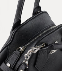 In black, the Yasmine Small Yasmine handbag is made from a PU blend and features a top-handle silhouette that opens with an orb-engraved zip puller. With a tonal interior lining cut from a recycled cotton blend, it can be worn in a hands-free style, thanks to its detachable strap. Material 54% Polyurethane, 30% Recycled Polycotton, 16% Polycotton Code: 45030001S000BN401 Details & Features H 16cm x W 22cm x D 10cm Zip fastening Handle height measures: 6cm Strap measures 127cm at full extension Metal orb emblem