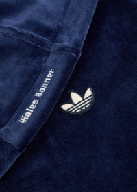 Info & Care Adidas X Wales Bonner velour jacket Hood with logo embroidery, knit signature three stripes through sleeves, elasticated cuffs, logo applique at chest, zip-fastening side slip pockets, elasticated drawstring hem, fully lined Two-way zip fastening through front; 75% cotton, 25% recycled polyester; lining: 100% cotton Machine wash Coordinating items available Size & Fit Length shoulder to hem: 24 inches/ 61cm Midweight Relaxed fit Model is 5'9"/ 175cm and wears a size small;