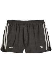 Info & Care Adidas X Wales Bonner wool-blend;shorts Concealed drawstring at elasticated waistband, pintuck through front, zip-fastening side slip pockets,;knit signature three stripes through sides, logo embroidery at front and back, longer back hem Pull on 50% wool, 50% recycled polyester Machine wash Coordinating items available Size & Fit Length waist to hem: 12 inches/ 30.5cm; back: 14 inches/ 35.5cm Midweight Relaxed fit Model is 5'9"/ 175cm and wears a size small;