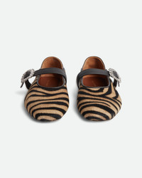 The Glide Slipper Zebra patterned pony hair uppers enliven a classic ballerina silhouette with a crystal buckle and a foldable leather heel for versatile styling. - Ballerina Slipper - Made in Italy - 82% Calfskin, 18% Sheepskin