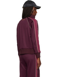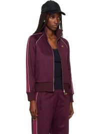 Cotton-blend jersey track jacket. · Rib-knit stand collar, hem, and cuffs · Two-way zip closure · Logo embroidered at chest and back collar · Welt pockets at waist · Piping and crochet stripe at raglan sleeves Supplier color: Burgundy Body: 55% polyester, 45% cotton. Lining: 100% polyester. Made in Portugal 252752F097008