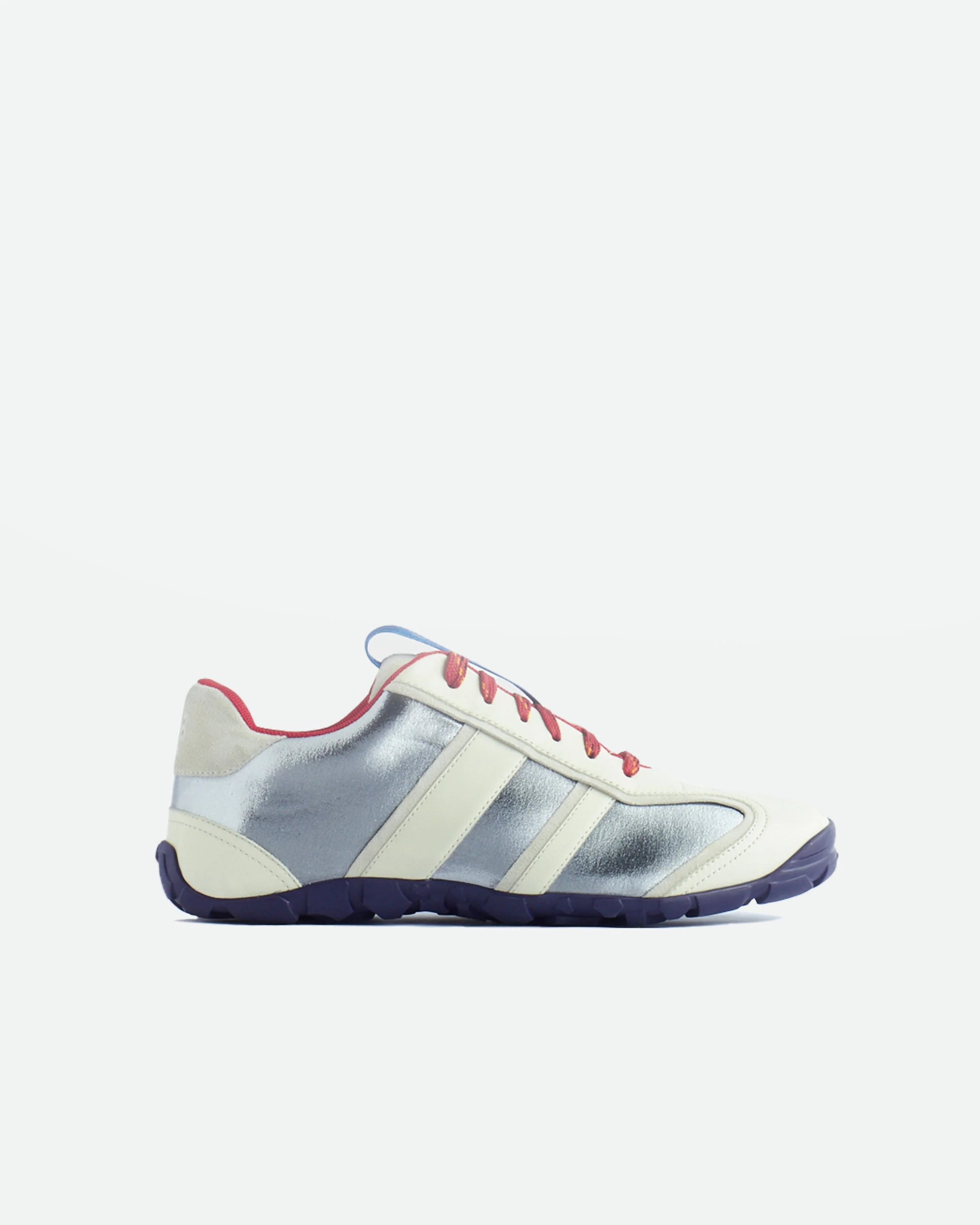 The Cadence Sneaker Fine leather uppers and contrast silver panels are detailed with jacquard laces and a Vibram sole. - Made in Italy - Vibram Sole - Branded Tongue-Flap