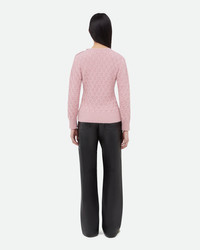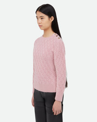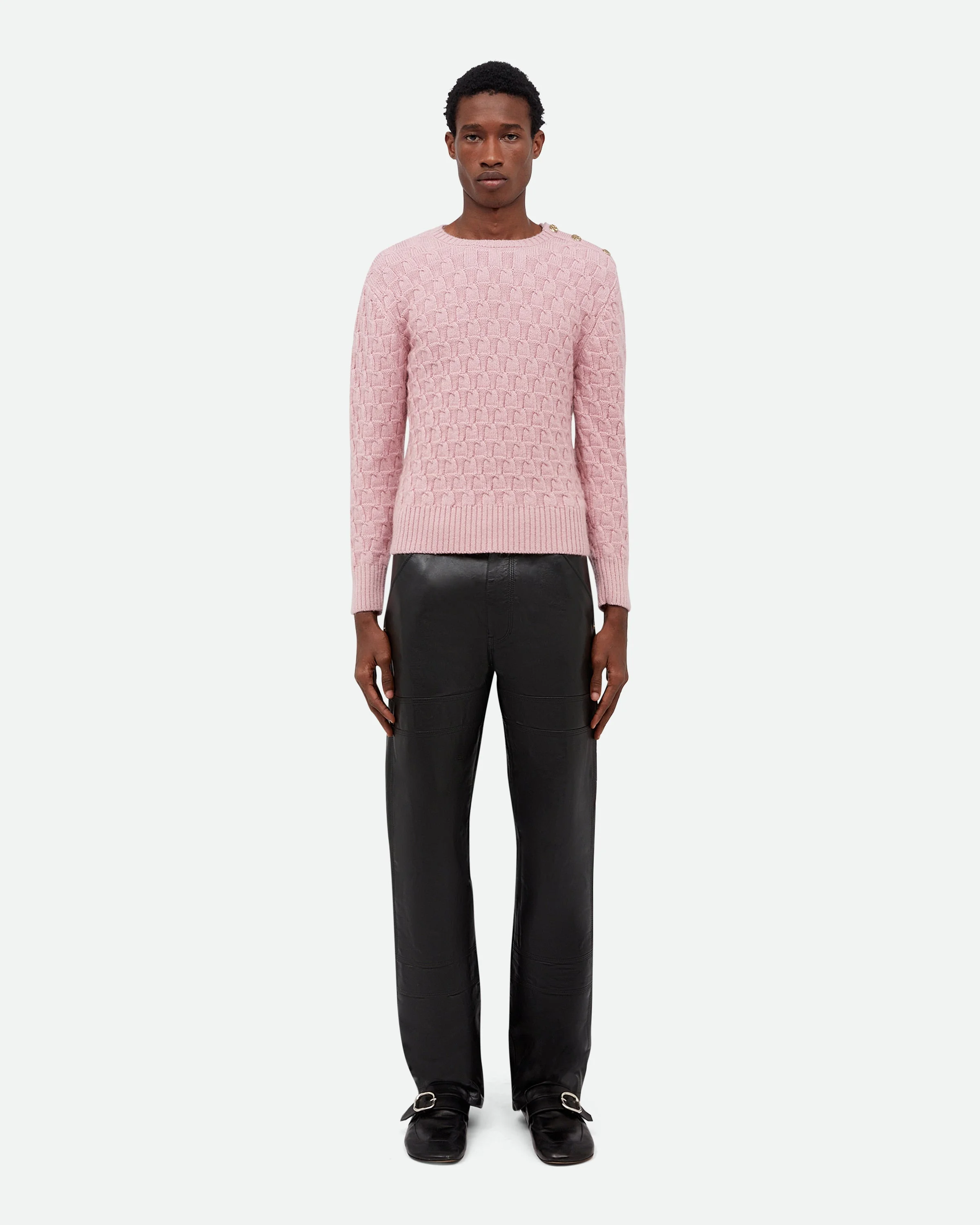 The Chord Jumper Blush wool-mohair knitwear in a cropped silhouette with gold button closures at the shoulder. - Contrast Ribs - Cropped Fit - 58% Mohair, 42% Wool