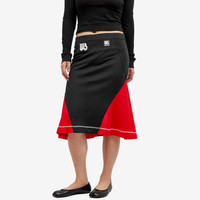 Wales Bonner takes cues from sports sensibilities this AW23 season with this Quest skirt. This knee-length design adds a vibrant splash of colour to any wardrobe thanks to its contrasting side panels - while the designer’s signature monogram seals the silhouette together to the front. - 100% Polyester - Knee Length - Printed & Applique Branding - Made in Portugal