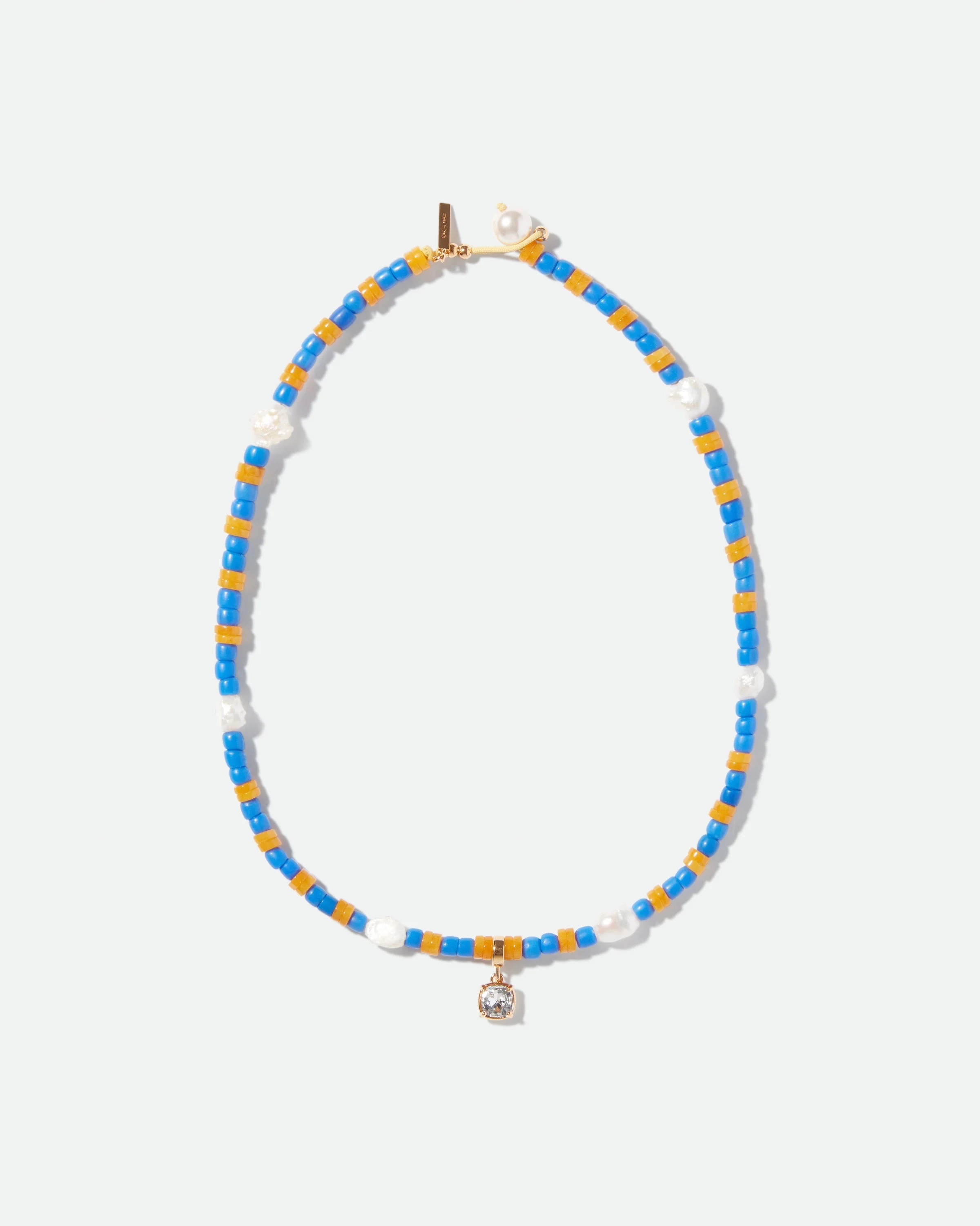 A seasonal iteration of the signature Dream Necklace, crafted from recycled glass beads made by artisans in Ghana and Kenya along with freshwater pearls and a Swarovski crystal pendant. - Gold-Plated Brass - Artisanal Beads - Made in Italy