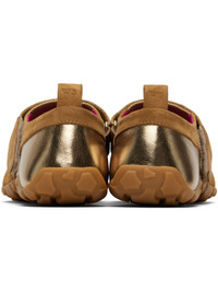 Buffed leather and neoprene sneakers. · Suede trim throughout · Adjustable velcro strap at vamp · Embossed logo flag at heel collar · Logo embossed at side · Treaded Vibram® sole Supplier color: Gold/Beige/Fuchsia Leather, textile. Made in Italy 252752F128010