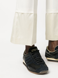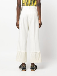 Harmony straight-leg wool trousers These Harmony wool trousers showcase Wales Bonner's elevated take on basic pieces. Contrasting panels maintain an innovative feel, whilst the elegant cut offers a refined finish to the silhouette. Highlights - Ivory white - Wool - Panelled design - Pressed crease - Straight leg - Cropped leg - Concealed front fastening - Slip pockets to the sides - Rear welt pocket Made in Italy Composition Outer: Viscose 100%, Wool 100% Lining: Cupro 100% SIZE & FIT Model measurements Height 5 ft 10 in(1.77 m) Bust/Chest 32.28 in(82 cm) Hips 35.03 in(89 cm) Waist 25.19 in(64 cm) FittingInformation Designed with a flared hem, these trousers allow for a close fit at the waist with a slim fit over the leg and widening towards the hem Made from a midweight stretch fabric, this piece offers elasticity and flexibility when worn This piece fits true to size – take your usual size Washing instructions Dry Clean Only