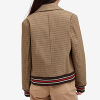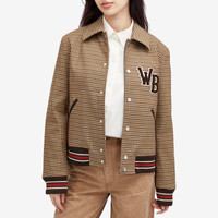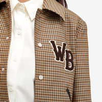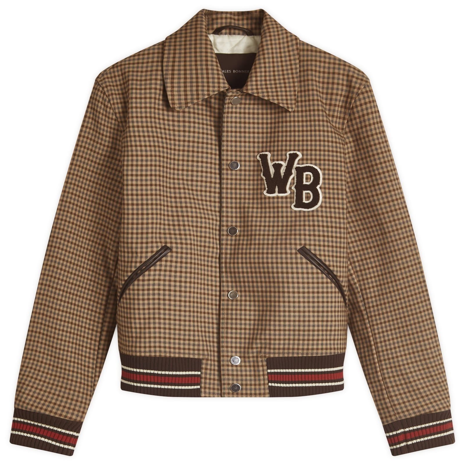 Combining heritage craftsmanship with contemporary design, the Wales Bonner homecoming varsity exudes preppy, refined style. Crafted from bonded cotton check fabric, it features chenille embroidered patches, heavyweight, bold ribbed cuffs and hem and a silver press stud fastening. Elevate your wardrobe with this sleek, must-have piece. - 50% Cotton, 42% Viscose, 2% Elastane - Bonded Cotton Check - Regular Fit - Classic Collar - Snap Button Fastening - 2 Slit Pockets - Ribbed Cuffs & Hem - Branded Embroidered Patches